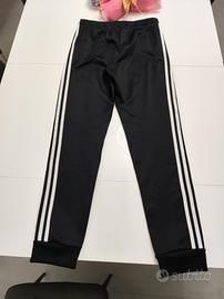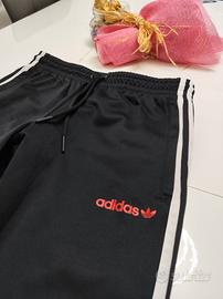pantaloni tuta Adidas nero strisce bianche logo rosso taglia S vestibilità slim nuovi mai usati.