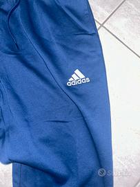 Pantaloni tuta Adidas originali, colore blu scuro, NUOVO. Modello comodo e versatile, ideale per sport, palestra o tempo libero. Tessuto morbido e caldo, perfetto per le stagioni più fresche. Vita elasticizzata con coulisse regolabile e fondo con polsini per una vestibilità confortevole. Logo Adidas ricamato sulla gamba.