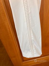 In colore bianco panna, in otrime condizioni, con motivo che accompagna tutta la lunghezza sul davanti. Chiusura con zip sul retro.