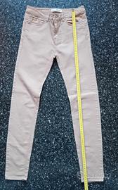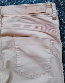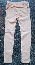 Pantaloni da donna di Stradivarius. Il modello è push up e sono attillati. Il colore è beige. La misura è EUR 36, che corrisponde a una S. Ha una vestibilità aderente. Ha un tessuto elasticizzato per un maggiore comfort. Ha dettagli con tasche e la chiusura con zip e bottone. Sono usati ma sono in buone condizioni. Le misure con il metro sono mostrate in foto.