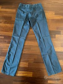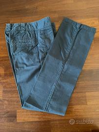 Pantaloni Benetton, 100 % cotone taglia IT 38, colore blu, vita bassa, gamba dritta, due tasche anteriori, una tasca posteriore, molto comodi. Misure vita 34 cm, lunghezza 102 cm. Ottime condizioni.