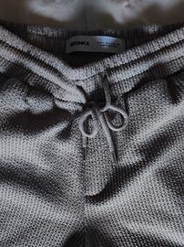 Pantaloni Bershka uomo in tessuto waffle grigio chiaro, Taglia S, con vita elasticizzata e coulisse regolabile, gamba dritta e tasche laterali, perfetti per un look comfy ma curato, ideali sia per il tempo libero che per outfit casual da tutti i giorni.