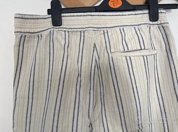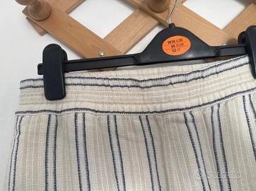 Pantaloni elasticizzati bianco panna con righe verticali misto bianco, nero e beige. Usato pochissime volte. Molto comodo, perfetto per un aperitivo in riva al mare.