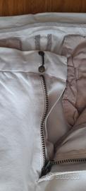 Pantaloni bianco panna con bande laterali nere taglia 46 Marca weber, in ottime condizioni. Chiusura dei pantaloni a gancio come da foto.