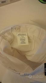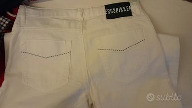Vendo pantaloni Bikkemberg taglia 42, nuovi, con cartellino. Sono di cotone. bianchi con impunture. La qualità del tessuto è ottima.