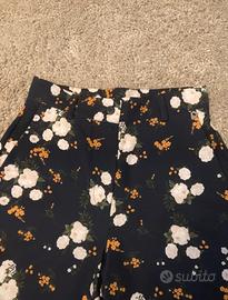 Pantaloni blu scuro dritti con stampa floreale estivi/primaverili della marca Dixie. Taglia XS.