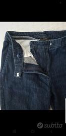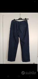 Pantaloni blu scuro, stile casual elegante, marca Xetra, effetto jersey stile jeans, in cotone (no materiali sintetici), ideali per l'autunno e l'inverno, due tasche laterali e una posteriore.