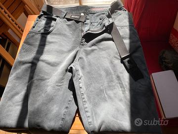 Vendo pantaloni originali Blue Skin, taglia 48, modello skate lungo ricamato con dettagli verde fluo.