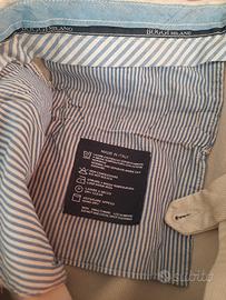 color beige, tessuto particolare a righe finissime, bottone da rinforzare come si vede da foto