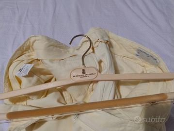 nr 2 paia di pantaloni Brunello Cucinelli taglia 48, usati pochissime volte e in ottimo stato. Nel modello chiaro manca un piccolo accessorio in pelle per aprire la tasca posteriore ma può essere sostituita o tolte entrambe, il modello scuro ha una piccolo segno vicino al bottone centrale ma quasi impercettibile. Prezzo per entrambi i pantaloni e non trattabile.