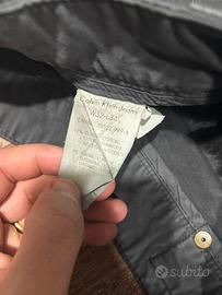 Vendo pantaloni Calvin Klein Jeans originali, dal design semplice ed elegante, perfetti sia per uso quotidiano che per occasioni casual. 🔹 Caratteristiche: •Colore nero/grigio scuro leggermente slavato •Modello classico 5 tasche •Chiusura con bottone e zip •Logo Calvin Klein su etichetta e dettagli •Tessuto comodo e resistente 🔹 Condizioni: Pantaloni in buone condizioni, senza strappi. Presentano solo normali segni di utilizzo (leggere sfumature sul tessuto), che danno anche un effetto vissuto moderno. 🔹 Vestibilità: Taglia [inserisci taglia], vestono bene e sono adatti a diversi outfit. Perfetti per tutti i giorni, lavoro o tempo libero.