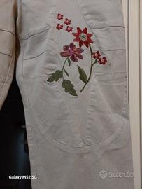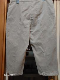 Pantaloni capri, leggermente elasticizzate, cotone effetto scamosciata, circonferenza vita 95-100cm, fianchi 110cm,lunghezza 80cm.