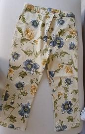 pantaloni Capri Taglia 44 cotone - elasticizzato stampa floreale fondo beige lungh. 80 cm Indossato poche volte