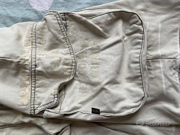 Vendo pantaloni cargo originali Alpha Industries in colore beige chiaro taglia 32, usati ma in ottime condizioni. Tasche multiple (laterali + posteriori). Chiusura con zip e bottone. Tessuto resistente ma confortevole.