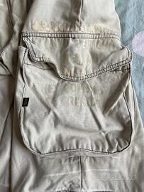Vendo pantaloni cargo originali Alpha Industries in colore beige chiaro taglia 32, usati ma in ottime condizioni. Tasche multiple (laterali + posteriori). Chiusura con zip e bottone. Tessuto resistente ma confortevole.