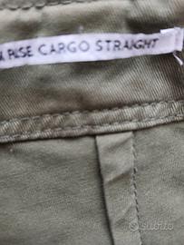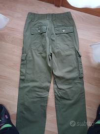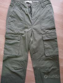 vendo pantaloni donna modello cargo, con tasche laterali superiori e tasconi sulle gambe, cerniera con bottone anteriore, tasche posteriori, marca Bershka, taglia 34