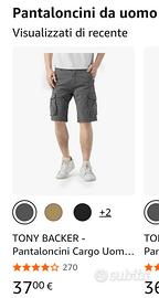 Metto in vendita questi pantaloncini cargo da uomo del marchio Tony Backer. Sono di colore grigio e sono nuovi con cartellino. Alta vestibilità, materiale fresco 97 cotone e 3 elastane. Comodi e Resistenti facili da lavare