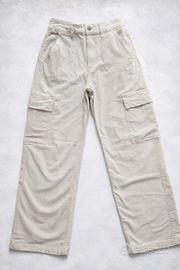 Pantaloni cargo Hollister originali in velluto a coste, ideali per un look casual e streetwear di tendenza. ✔️ Colore beige/crema facile da abbinare ✔️ Tessuto in velluto a coste (corduroy), morbido e resistente ✔️ Vestibilità baggy / relaxed fit ✔️ Tasche cargo laterali super pratiche ✔️ Chiusura con bottone e zip ✔️ Logo Hollister inciso sul bottone 📏 Taglia: W27 (vita alta, modello ultra high-rise) 📌 Condizioni: Ottime condizioni, come da foto 💯 Perfetti per outfit casual, vintage o street. Stanno benissimo con sneakers o scarponcini. 🚀 Spedizione veloce – contattami per qualsiasi info!