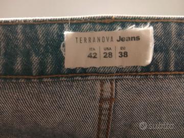 Pantaloni cargo in denim chiaro acquistati da Terranova, indossati pochissime volte. Presentano tasche laterali capienti e cuciture a vista lungo le gambe, che donano uno stile casual e alla moda. Il tessuto è ben tenuto, senza strappi né macchie.