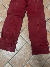 Off-White pantaloni cargo rossi - Taglia 32 - Carpenter fit - Realizzato in tessuto di cotone robusto al 100% - Tasche applicate sulle cosce, pannelli rinforzati per le ginocchia e spalline regolabili con bottoni sull'orlo. - Chiusura con cerniera e un bottone - Logo circolare del marchio a sinistra - Scrittura sul retro ”business casual Off-White” - Ottime condizioni, usato ma ancora buono - Misure: lunghezza 105 cm - vita 41 cm - apertura gambe 33 cm - vita anteriore 25 cm - orlo 20 cm