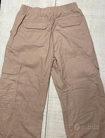 Pantaloni di cotone con tasche anche laterali, color nocciola. Taglia: 11-12 anni per una altezza di 152cm circa. Misure: lunghezza vita= 30cm circa, lunghezza totale= 82cm circa.