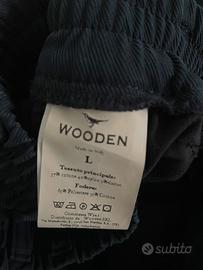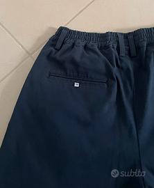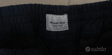 Vendo bellissimi pantaloni modello chino firmati Wooden Store, colore blu navy, originali e realizzati interamente in Italia. Li vendo a malincuore esclusivamente per passaggio a taglia superiore (aumento di peso), in quanto il capo è ancora in ottime condizioni e di altissima qualità. Dettagli del Prodotto: • Valore del nuovo: Pagati in boutique oltre 100€. • Taglia: L (vestibilità regolare/comoda). • Materiale Pregiato: Tessuto tecnico composto da 57% Cotone, 40% Nylon e 3% Elastan. Questo mix li rende resistenti, traspiranti e soprattutto non si stropicciano, mantenendo la piega perfetta tutto il giorno. • Design: Vita elasticizzata per il massimo comfort, pinces frontali per un tocco sartoriale e tasche a filo posteriori con dettaglio bottone a contrasto. Condizioni: Il pantalone è stato tenuto con cura: il colore è ancora vivido e le cuciture sono perfette. È un capo versatile, ideale sia per l'ufficio che per un'uscita serale casual-chic.