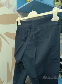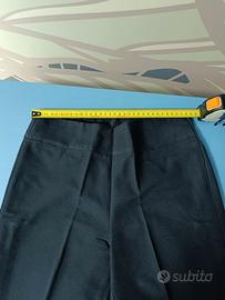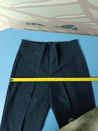 Pantaloni classici donna, da tailleur, da ufficio, da divisa di lavoro. Taglia 40, vestibilità vita alta, sono stati solo accorciati perché troppo lunghi per me (vedi foto misure). Essendomi stati forniti come divisa di lavoro, sono da considerarsi 4 stagioni. In viscosa e poliestere. Usati ma in ottime condizioni. Possibilità di acquistarli singolarmente o acquistarli in stock (ne ho 3 paia).