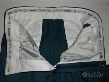 adatti a tutte le stagioni, in tessuto pettinato, colore azzurro, taglia 50, vestibilità regolare, indossati solo un paio di volte in occasione di due matrimoni. Tenuti in armadio con sacchetto nylon della lavanderia.