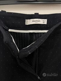 Pantaloni Classici Mango Caratteristiche: - Micro Pois; - Modello a Sigaretta; - Chiusura con Bottoni e Cerniera; - Passanti per Cintura; - Risvolti alle Caviglie; - Tasche. Marca Mango Dimensioni: - Lunghezza Totale 98 cm; - Circonferenza Vita 68 cm; - Lunghezza Gamba Esterna 97 cm; - Lunghezza Gamba Interna 70 cm; - Circonferenza Gamba 45 cm. Dettagli: - Materiale 64% Poliestere, 34% Viscosa e 2% Elastan; - Colore Blu Notte; - Taglia 38/XS (EUR 34); - Genere: Donna. Nuovo senza Cartellino Per Qualsiasi Dubbio o Informazione non Esitate a Contattarmi! #Mango #MangoSuit #ClassicStyle #OfficeLook #Taglia34 #TagliaXS