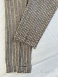 Pantaloni da completo Sonny Bono misto lino tortora gessato tg 50