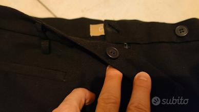 Taglia 48 con taschini parte anteriore e chiusura con bottone.