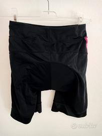 Pantaloni corti adatti per il ciclismo, da donna con imbottitura. Elasticizzati ed aderenti. Colore nero con fasce laterali rosa e dettagli bianchi. Usati alcune volte ma ben conservati. Non presentano segni di usura. Marca Crivit.