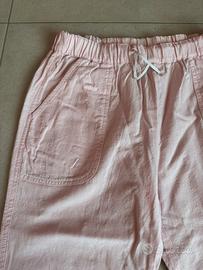 Pantaloni corti un po’ sotto il ginocchio, in lino, con elastico in vita (dita larga 33 cm ma facilmente regolabile) e due tasche laterali. Molto freschi e privi di difetti da segnalare.