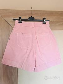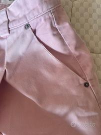 Pantaloni corti donna /ragazza in tela robusta di cotone, colore rosa baby, gamba larga. Marca SOLOTRE Taglia 44. Vita media Circonferenza gamba 80 cm Lunghezza gamba da cavallo 13 cm Circonferenza vita 75 cm Condizioni pari al nuovo, vendo per taglia errata.