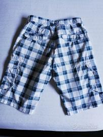 Pantaloni uomo corti a quadri verdi e bianchi, 6 tasche, ottimi