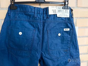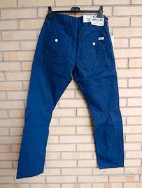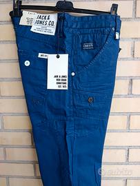 Pantaloni jack & Jones in cotone cerato di colore blu meccanico nuovi con cartellino ed etichette taglia 34 Leggermente cerati anti vento Ideali per chi passa il tempo all' aperto o va in bicicletta moto Sei tasche 85 cm circonferenza totale vita Lunghezza pantalone 110 cm Larghezza fondo 19 cm