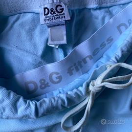 Vendo Pantaloni originali D&G Dolce&Gabbana Underwear Fitness di colore azzurro chiaro con logo stampato in colore argento sulla gamba.