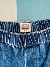 Marchio Scout età 11-12 anni con elastico in vorta. Colore blu medio effetto slavato. Cotone leggero.