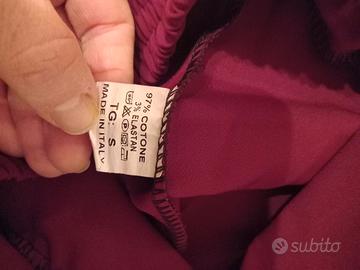 Pantaloni da donna, colore rosso, tg. S, lunghezza 97 cm, Made in Italy, cotone elastane