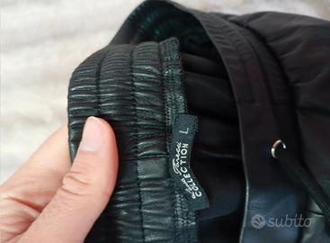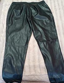 pantaloni da donna elasticizzati in finta pelle, misura della vita 46 cm, misura dei fianchi 55 cm, altezza del cavallo 28 cm, lunghezza della gamba 104 cm.