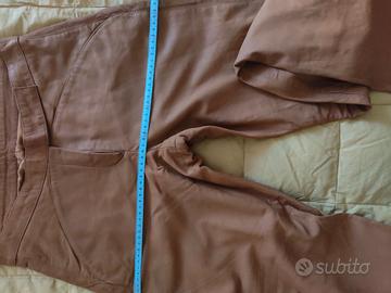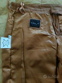 Pantaloni da donna in finissima pelle naturale color nocciola, taglia 40 francese (44 italiana), completamente foderati, leggermente alla zampetta.