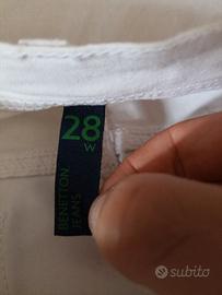 2) Benetton Jeans jeggings bianchi taglia 28 W,4 tasche,chiusura a bottone e cerniera passanti per cintura.
