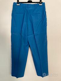 Pantaloni da donna Zara, colore azzurro ceruleo, taglia L- 44 italiana, composizione come da foto, nuovi ma senza cartellino, gamba ampia , tasche laterali