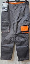 N° 3 Pantaloni da lavoro marca Delta Plus M2PA2GR , nuovi ancora in confezione originale, colore grigio/arancio, taglia L, 7 tasche esterne a soffietto, 1 tasca porta metro, triple cuciture, 2 tasche porta ginocchiere, elastico laterale in vita e automatico, bordino riflettente nelle gambe. Genere: Uomo/Unisex