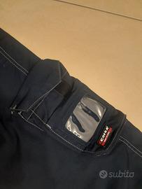 Pantaloni da lavoro cifra idrorepellente con rinforzi e varie tasche. Taglia IT 48, F42 ( indicato in etichetta): vedi misure in foto Rinforzi e tasche laterali e dietro Strip laterale per stringere leggermente in vita Attenzione : l etichetta cifra dietro si è un po rovinata stirando il pantalone che è nuovo