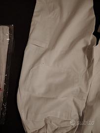 Pantaloni bianche 100% cotone con elastico in vita e due tasche una posteriore e una di lato. Taglia S vestono comodo. Ideali come divisa nel settore alimentare. Sono disponibili 2 paia a 6 euro l'uno.