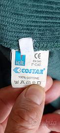 Pantaloni da lavoro in velluto verde a coste, 100 % cotone, 4 tasche + 2 tasconi laterali, chiusura con bottoni, elasticizzati in vita.