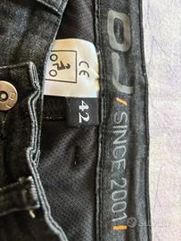 Vendo per inutilizzo pantaloni jeans da moto da donna. Antiabrasione con protezioni sulle ginocchia e protezioni sulle anche. Le protezioni sono estraibili come da foto. Taglia 42. Usati una volta sola per taglia errata.