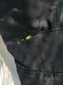 pantaloni da moto dainese in gorotex, perfetti per zone fredde e piovose, sono caldissimi, e non entra una goccia d'acqua, vestibilità ottima, sono sfoderabile così si può togliere l'imbottitura e usarli d'estate, unico difetto parte posteriore zona tra coscia e ginocchio c'è un piccolo strappo si un 1 cm bruciacchiato con la marmitta ,ma è facile da riparare, e anche così si possono usare. completo di protezione alle ginocchia. colore nero.