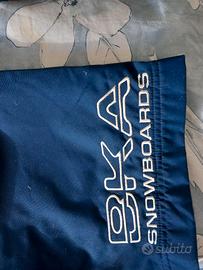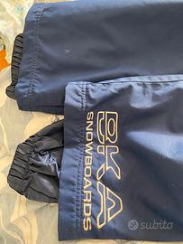 Ottimi pantaloni impermeabili imbottiti BKA Snowboards : l'esterno è in poliammide, l'interno è in poliestere. La taglia è M. con cintura elastica regolabile. Oltre ai pantaloni guanti di pelle bleu, rosso e bianco e ghette da neve nere. Vendo per mancato uso
